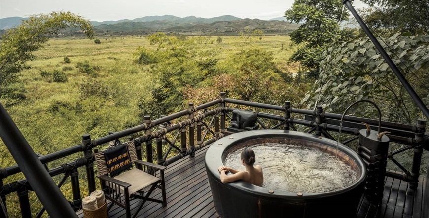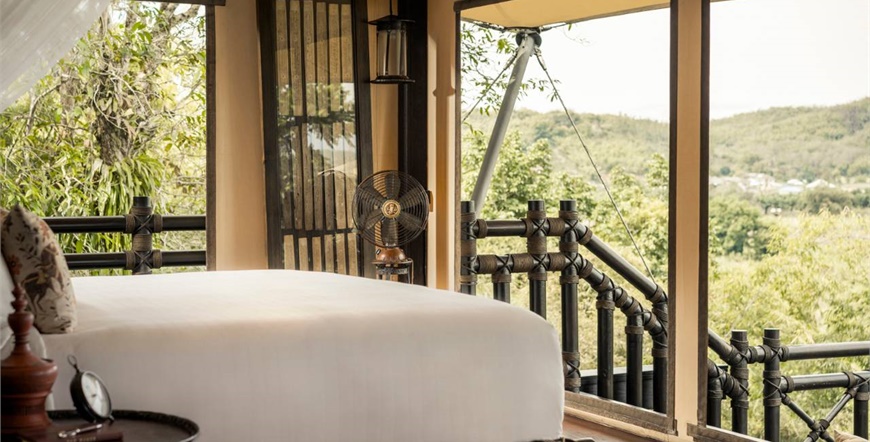 Smješten na brežuljku usred Zlatnog trokuta, ovaj luksuzni kamp nudi prekrasan pogled na tajlandsku džunglu, rijeku Ruak, granicu s Burmom i planine u Laosu.