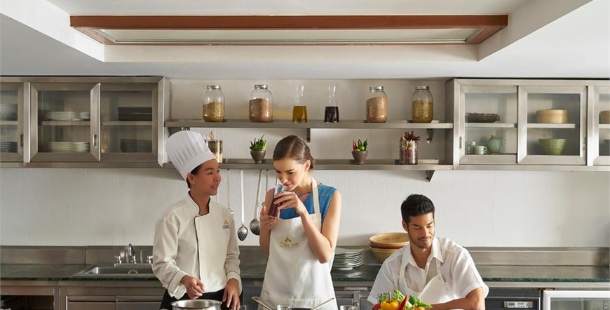 Naselje je osvojilo brojne nagrade širom svijeta za izvrsnu SPA kuhinju. Koncept se temelji na ukusnoj, zdravoj i lako probavljivoj kuhinji sa sastojcima, većinom uzgojenim u vlastitom vrtu. Restoran Emerald nudi internacionalnu SPA kuhinju, a restoran Taste of Siam, smješten na plaži, poznat je po tajlandskoj SPA kuhinji. Alkoholna pića poslužuju se u objektu samo navečer i samo na zahtjev. Obroci: Doručak, ručak i večera u Emerald restoranu ili Taste of Siam.