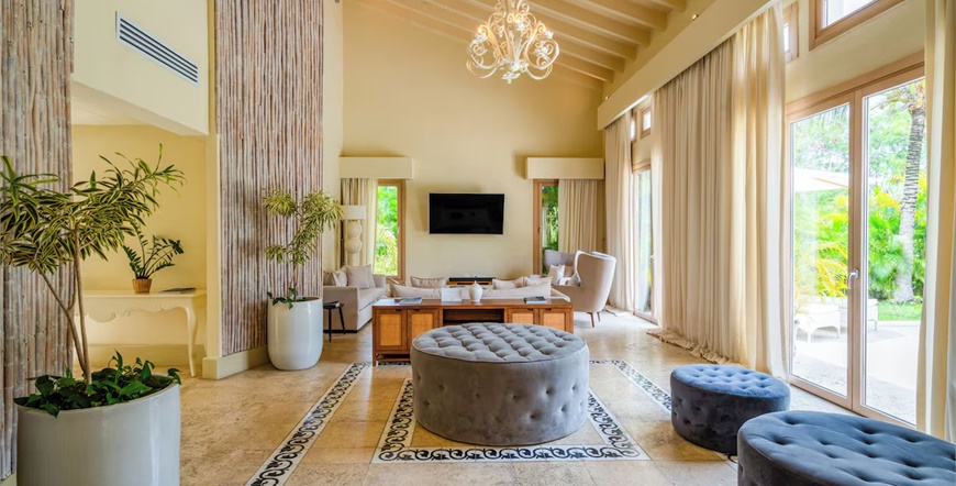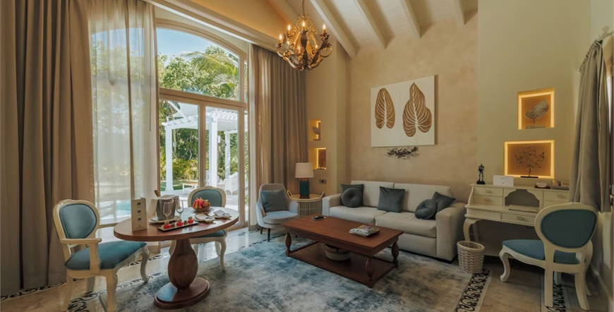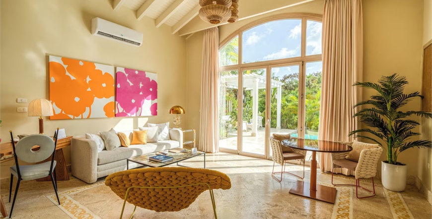Eden Roc Cap Cana je ekskluzivni 5★ resort smješten u privatnoj i prestižnoj zoni Cap Cana, na istočnoj obali Dominikanske Republike, nedaleko od Punta Cane. Resort spaja europsku eleganciju (snažno nadahnutu španjolskim i rivijerskim stilom vila) s karipskim šarmom: sve smještajne jedinice — vile, suiteovi, bungalow-vile — nude visoki komfor, privatnost i često vlastiti bazen. Resort je član prestižne grupacije „Relais & Châteaux“, jedini takav u zemlji — što garantira pažnju prema detaljima, vrhunsku uslugu i luksuz. Okruženje je tropsko i mirno, s vrtovima, lagunama i pogledom na more — idealno za relaksaciju, privatni odmor ili romantični bijeg.