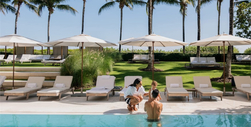 Four Seasons Hotel at The Surf Club je luksuzni hotel smješten uz ocean u Surfsideu (sjeverno od Miami Beacha), s dugom tradicijom i prepoznatljivim stilom Four Seasons brenda. Hotel spaja klasičnu eleganciju i suvremeni dizajn, a sobe i suiteovi su prostrani te nude pogled na Atlantski ocean ili mirne vrtove. U objektu se nalaze više restorana vrhunske gastronomije, pažljivo uređeni spa-centar, moderni fitness centar i impresivni bazeni s pogledom na more. Hotel je idealan za goste koji traže sofisticirani odmor uz plažu, ali i blizinu urbane ponude Miamija.