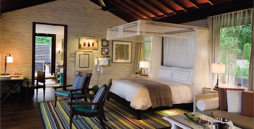 67 vila i Suite-a uređeni su u tradicionalnom kreolskom stilu od lokalnog drveta i cigli i pružaju široki pogled preko stijena na more ili zelene površine. Svaka vila i apartman ima prostrane vanjske površine koje su ugrađene u tropskom krajoliku. Sadrže kadu, odvojeni kišni tuš, sušilo za kosu, ogrtač, telefon, TV, mini bar, sef i klima uređaj. Ekspanzivna paluba s natkrivenom sofom na rasklapanje i stolicama za ležanje, blagovaonicom, vanjskim tušem i infinity bazenom.
