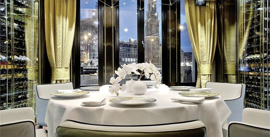Bord''Eau (2 Michelinove zvjezdice) nudi kulinarske užitke 21. stoljeća. U Hoofdstad Brasserie možete gledati kuhare. Ovdje se nudi moderna kontinentalna kuhinja. Promenade je lokacija za vidjeti i biti viđen i nudi izbornike laganih jela i poslijepodnevni čaj. Uživajte u popularnom čaju i u Amsterdamskom društvu u voljenome Freddy Baru uz najbolji Bloody Mary u gradu.