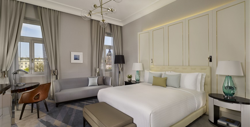 Nudi prostrane i elegantne sobe te suiteove s pogledom na rijeku ili park, luksuzan spa centar s bazenom, saunama i wellness tretmanima, te vrhunski restoran s balkonom uz Dunav. Gosti također mogu uživati u elegantnom ljetnom vrtu i ekskluzivnim salonskim prostorima za opuštanje i događanja.