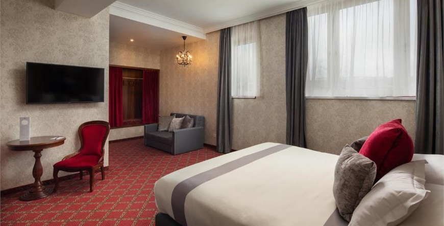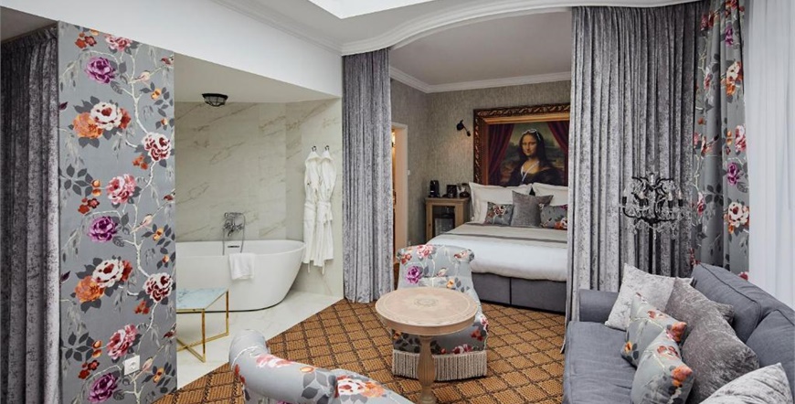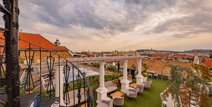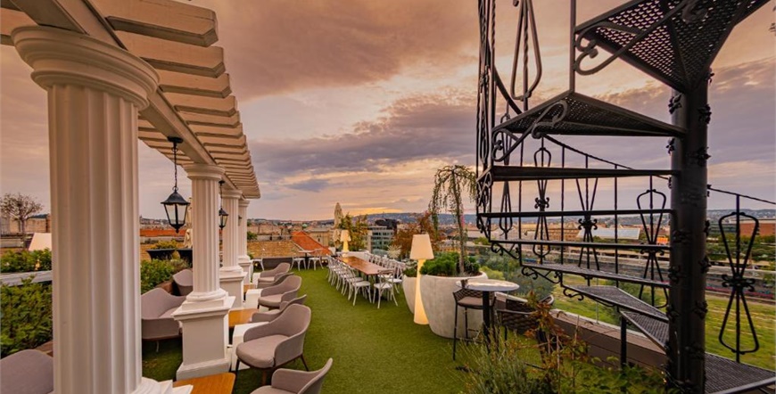 Hotel raspolaže elegantnim sobama i apartmanima, uključujući prostrane dvoetažne suite i sobe s balkonom te pogledom na grad ili skriveni vrt „Secret Garden“. Posebnu atmosferu pruža raskošna dvorana „The Great Hall Restaurant & Lounge“, kao i rooftop terasa „Sky Garden“ s panoramskim pogledom na Budimpeštu.
