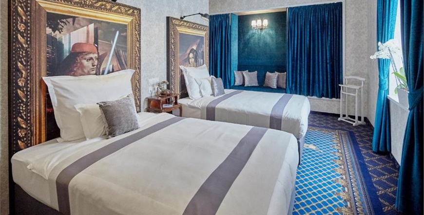 Mystery Hotel Budapest smješten je u povijesnoj palači iz 19. stoljeća u srcu grada, u blizini Mađarske državne opere i Bazilike svetog Stjepana. Ovaj luksuzni boutique hotel s pet zvjezdica poznat je po svom jedinstvenom dizajnu i tematskom uređenju soba, inspiriranih antičkim grčkim stupovima.