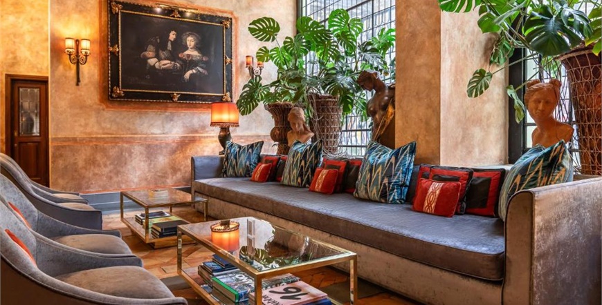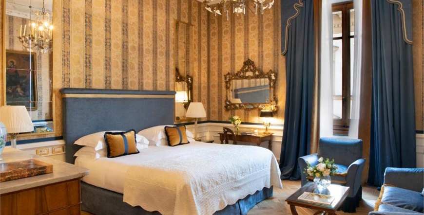 Hotel ima sobe i apartmane uređene s pažnjom prema detaljima — kombiniraju se povijesni elementi, umjetnička djela, antikni namještaj i suvremeni sadržaji. Temperatura u sobama je kontrolirana klimom, prostori su udobni, a ambijent miješa eleganciju i osjećaj doma.