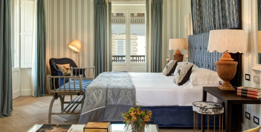 Elegantni, renovirani luksuzni hotel suvremenog dizajna nudi maksimalnu udobnost, prvoklasnu kuhinju i vrlo osobnu uslugu. Idealna lokacija i savršeno polazište za istraživanje grada. Hotel Savoy idealno je smješten na povijesnoj Piazza della Repubblica, vrlo blizu Duomoa i samo nekoliko koraka udaljen od modnih kuća, muzeja i galerija. U zgradi s kraja 18. stoljeća, nakon nedavne cjelovite obnove, hotel sjaji potpuno novim dizajnom: naglasci šarene umjetnosti i elemenata dizajna postavljeni su u elegantnom i uglavnom bijelom interijeru hotela. Opremljen je restoranom, barom, predvorjem, velikim fitnes centrom i parkiralištima (cca 50 EUR dnevno). Zračna luka Florence udaljena je oko 8 km.
