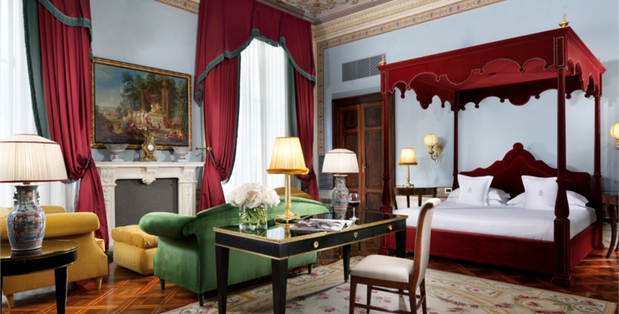45 soba i apartmana raštrkani su u glavnoj zgradi i depandansi i posvećeni različiteim temama ili osobama koje su nekad živjele u vili. Svaka soba i apartman su individualno dizajnirani i ima svoju osobitu draž. Sadrže: mramornu kupaonicu s kadom ili tušem, ogrtač, sušilo za kosu, telefon, SAT TV, Wi-Fi (besplatno), sef, mini bar (uključujući iz kategorije Junior Suite), klima uređaj.