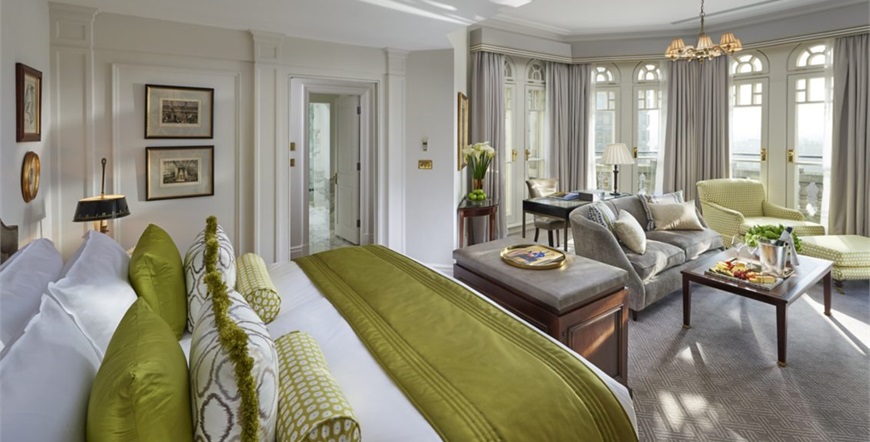 Svaka od 169 soba i 25 apartmana pojedinačno je opremljena antiknim namještajem i slikama te ima najmoderniju tehničku opremu. Sadrže kupaonicu, sušilo za kosu, ogrtač, Bang & Olufsen TV i zvučni sustav, DVD / CD-player, telefon, iHome stanice, WLAN, minibar, sef, klima-uređaj. Piće dobrodošlice i piće na dolasku. Dnevna opskrba mineralne vode u sobi.