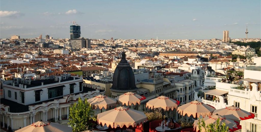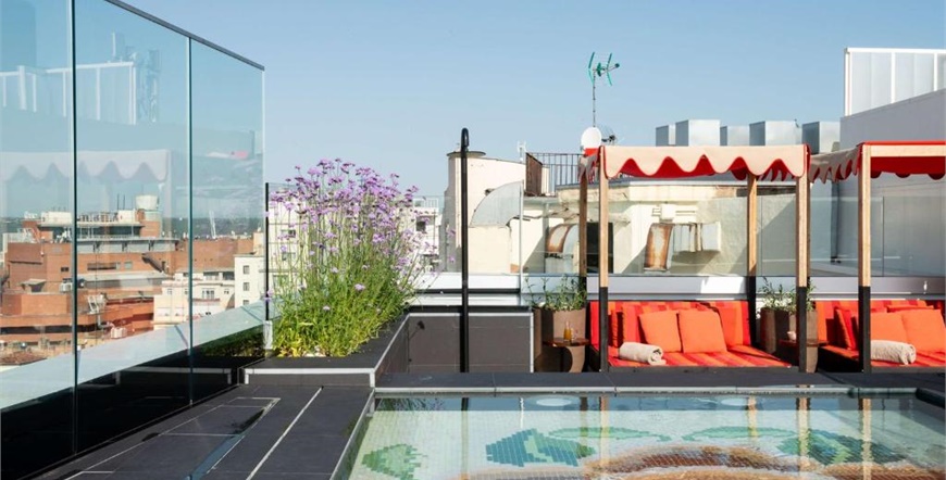 Sobe su elegantno uređene, s toplim tonovima i modernim sadržajima poput luksuznih kreveta, walk-in tuševa i prozora s pogledom na grad. Poseban naglasak stavljen je na rooftop terasu s panoramskim bazenom i barom, odakle se pruža spektakularan pogled na madridsku siluetu.