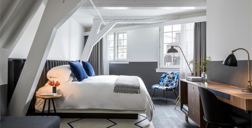 Hotel nudi 274 sobe i apartmana, uključujući i povijesne Townhouse apartmane u originalnim amsterdamskim kućama. Sobe su opremljene vrhunskim madracima, Nespresso aparatima, dizajnerskim kupaonicama i velikim prozorima.