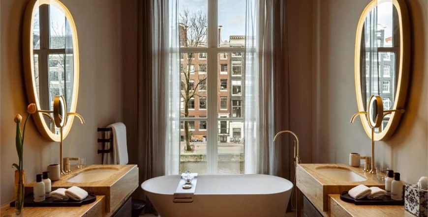Rosewood Amsterdam luksuzni je hotel s pet zvjezdica smješten uz poznati kanal Prinsengracht, u povijesnoj zgradi koja je nekada bila gradska palača. Hotel kombinira klasičnu nizozemsku arhitekturu s modernim dizajnom, a interijeri su uređeni u toplim bojama s detaljima od prirodnih materijala. Hotel nudi elegantne sobe i apartmane, dio njih s pogledom na amsterdamske kanale. Restorani u sklopu hotela pružaju vrhunsko gastronomsko iskustvo s fokusom na lokalne i sezonske sastojke. Gosti se mogu opustiti u spa centru s unutarnjim bazenom, saunom i tretmanima ljepote, dok je za aktivne na raspolaganju potpuno opremljen fitness centar. Lokacija je idealna za istraživanje grada – samo nekoliko minuta hoda dijeli hotel od Muzejske četvrti, shopping ulica i glavnih kulturnih znamenitosti. Rosewood Amsterdam je ekskluzivan izbor za putnike koji traže luksuz, intimu i autentičan amsterdamski doživljaj.