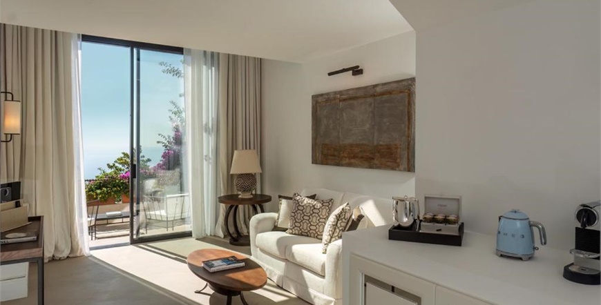 Furore Grand Hotel smješten je na impresivnim klifovima iznad mora, na jednoj od najljepših točaka Amalfijske obale. Nalazi se između Amalfija i Positana, a sama lokacija omogućuje panoramski pogled na Tirensko more i okolicu. Moderno uređeni prostori uklopljeni su u prirodni okoliš, s velikim terasama i otvorenim površinama koje naglašavaju mediteranski ambijent. Smještajne jedinice uključuju elegantne sobe i apartmane s pogledom na more, većinom s privatnim balkonima ili terasama. Sve su klimatizirane i opremljene suvremenim sadržajima. Posebna pažnja posvećena je dizajnu interijera koji kombinira svijetle tonove, minimalističke linije i luksuzne detalje. Hotel nudi raznolike sadržaje za odmor i opuštanje. Gosti mogu uživati u vanjskom infinity bazenu s pogledom na more ili se opustiti u unutarnjem bazenu i spa centru, koji uključuje saunu, parnu sobu i tretmane ljepote. Tu je i moderno opremljen fitness centar za one koji žele ostati aktivni tijekom boravka. Restorani poslužuju specijalitete lokalne i međunarodne kuhinje, a barovi i terase savršeno su mjesto za večernje opuštanje uz zalazak sunca. Furore Grand Hotel namijenjen je gostima koji traže luksuzan boravak u mirnom okruženju, ali i odličnu povezanost s glavnim atrakcijama Amalfijske obale.