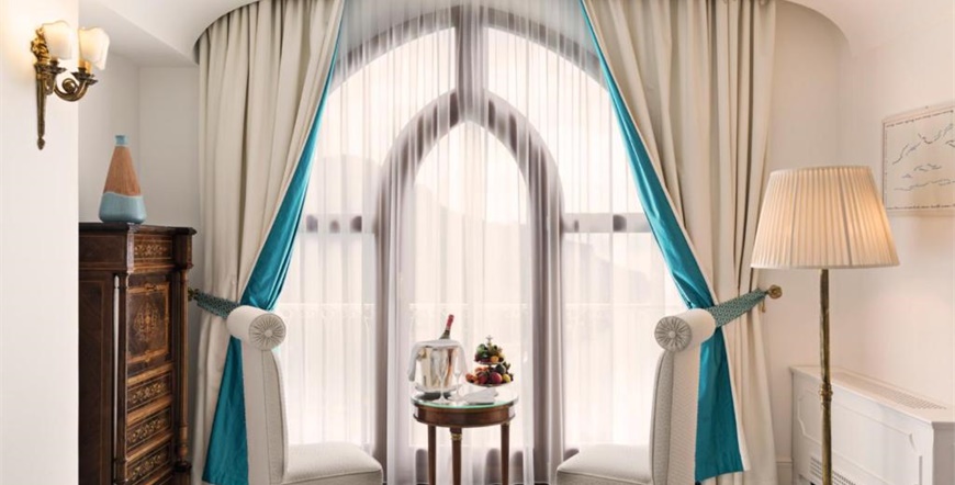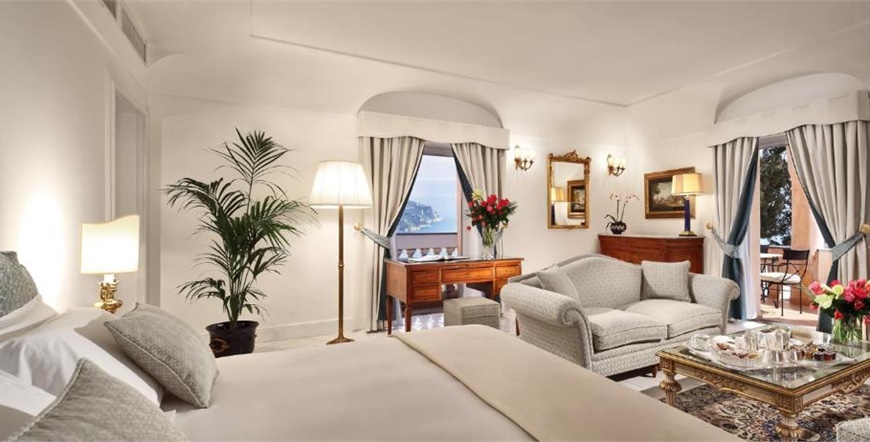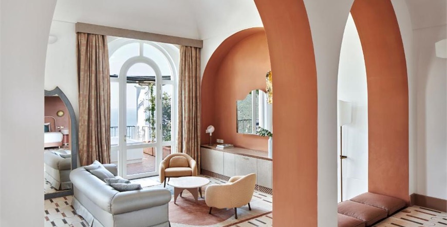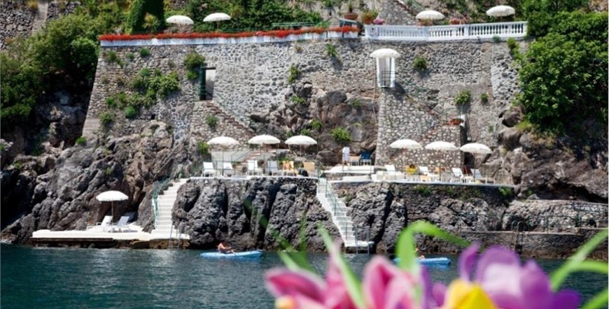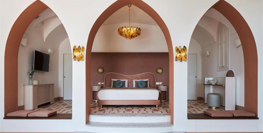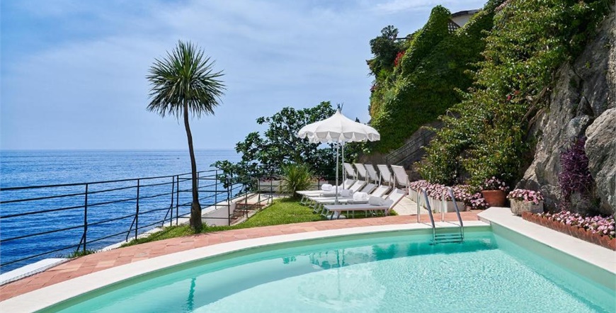 Hotel ima 33 sobe i 10 apartmana, sve elegantno uređene, klimatizirane i mnoge s pogledom na more. Interijer kombinira klasične arhitektonske elemente, antikvitete, lokalne keramičke dekoracije i luksuzne detalje. Ugodan doručak služi se u restoranu, a restoran Rossellinis ima Michelinovu zvjezdicu.