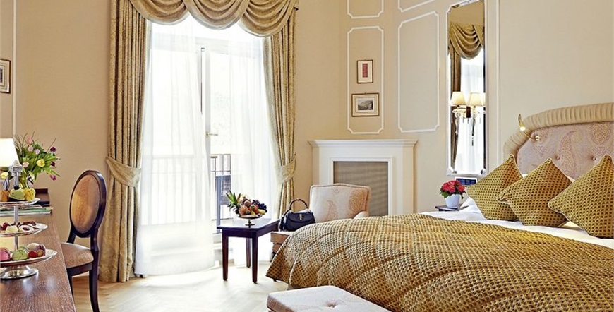 Elegantani interijer soba i apartmana s antikvitetima i umjetničkim djelima stvara jedinstveni ambijent. Svaka soba ima svoj vlastiti šarm i karakter. Sadrže: mramornu kupaonicu, ogrtače, sušilo za kosu, TV (sa plosnatim zaslonom), telefon, besplatni bar za osvježenje, besplatno korištenje filmskih kanala, WiFi (besplatno) i darovi dobrodošlice ( cvijeće i domaće delicije ). Butler-usluga na raspolaganju za sve sobe (doplata za suite bez naknade).